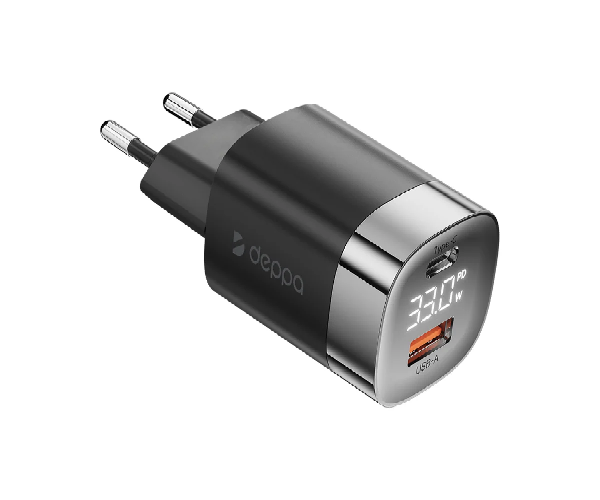 Фото СЗУ Deppa USB Type-C+USB-A QC 3.0 PD 3.0 33W дисплей Black (11439)